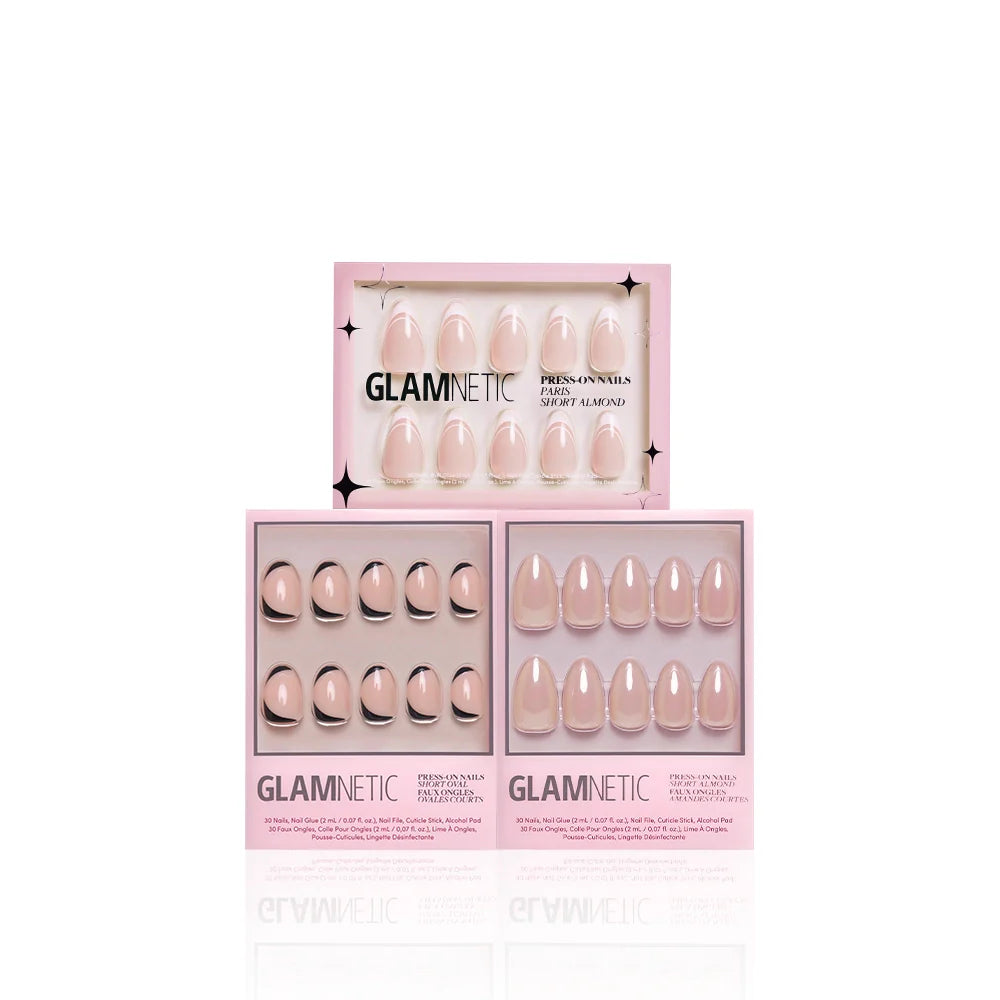 Jet set in style with the Glam and the City Bundle — a curated trio of salon-quality press-ons inspired by the world's most iconic cities. From a glazed nude to a chic French tip, each of these manis are effortlessly elegant for any occasion or destination. Easily apply each set within 5 minutes, so you can skip the salon — and the salon hassle.