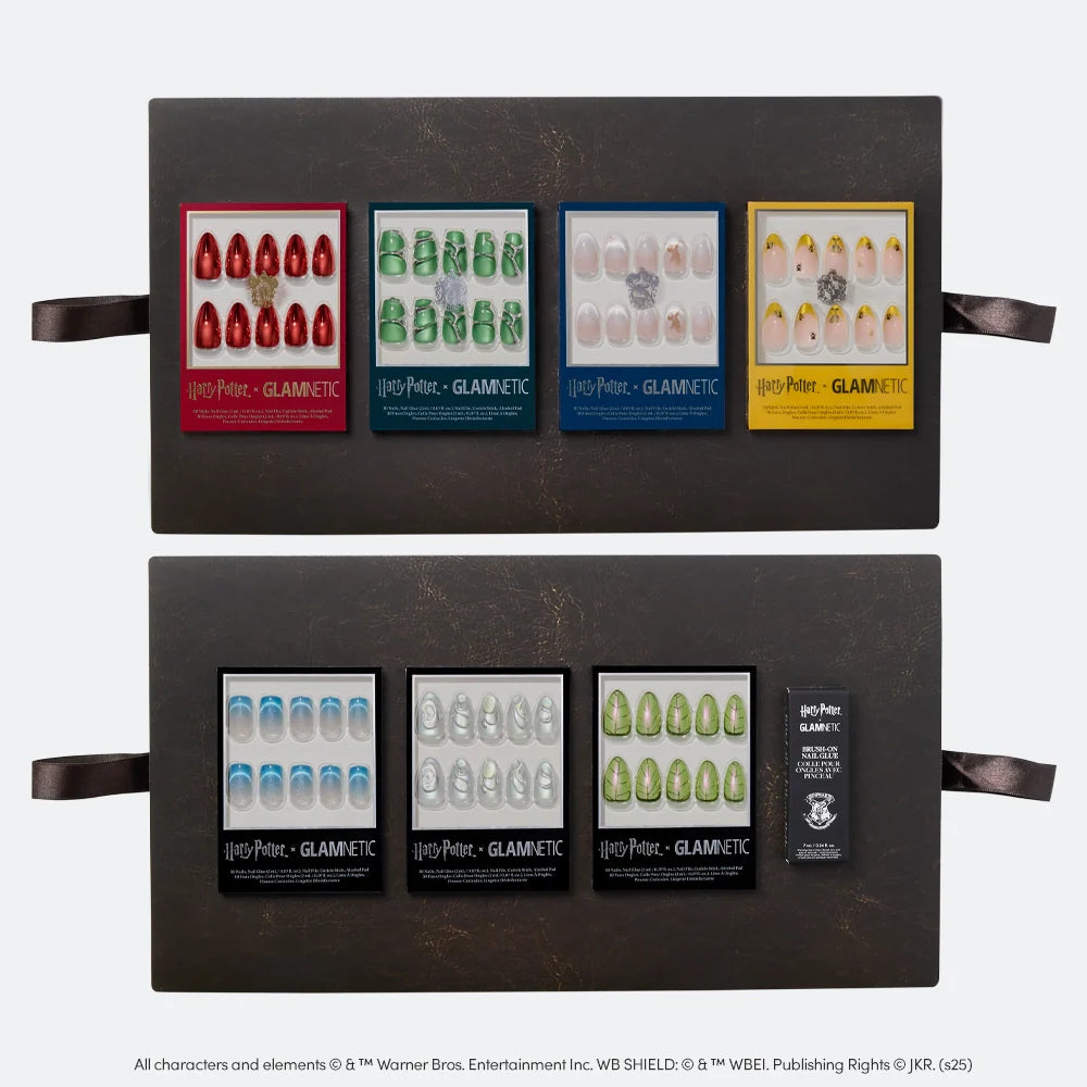 Inside, you’ll find all 9 spellbinding press-on nail designs, packaged in a reusable, trunk-style box complete with Hogwarts crest and house emblems, plus each must-have accessory in the collection. Whether displayed on your vanity or taken on your next magical journey, it’s a piece every superfan will want in their collection.