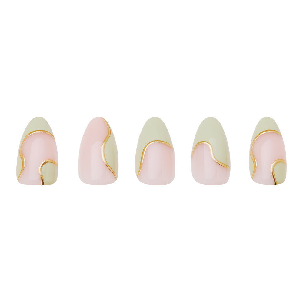 Elevate your everyday nail game with the Olive You Nail Set. This super-stylish design features a semi-transparent base with an abstract olive green and foil trim along each nail. Plus, the always popular short almond shape offers a trendy, yet wearable look that's perfect dressing up or down!