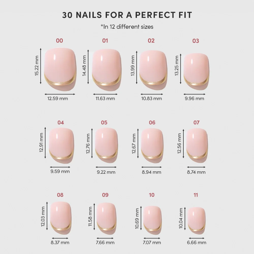 These nails will always be a power move. Inspired by our best-selling Goal Digger mani, the Quiet Luxury Press-On Nails feature a semi-transparent nude base with a gold foil reversed French tip, finished with a high-shine gloss for a sleek yet subtle statement. Crafted in our ultra-natural super short shape, these salon-quality manis will make your nails look effortlessly rich in just 10 minutes.