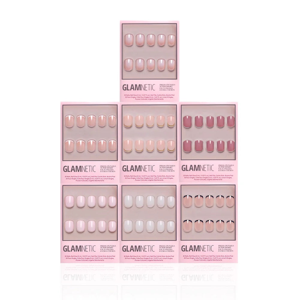 By overwhelming request: super short takes the stage. The Super Short Icons bundle includes 7 super short press-on nails — each in a timeless design. From milky whites and soft pinks to French tips, these super short press-on nails are clean, modern, and endlessly wearable. Easily apply in 10 minutes, and make these your signature shape.