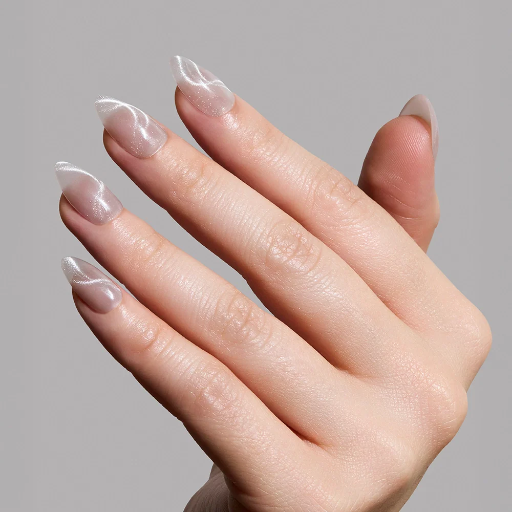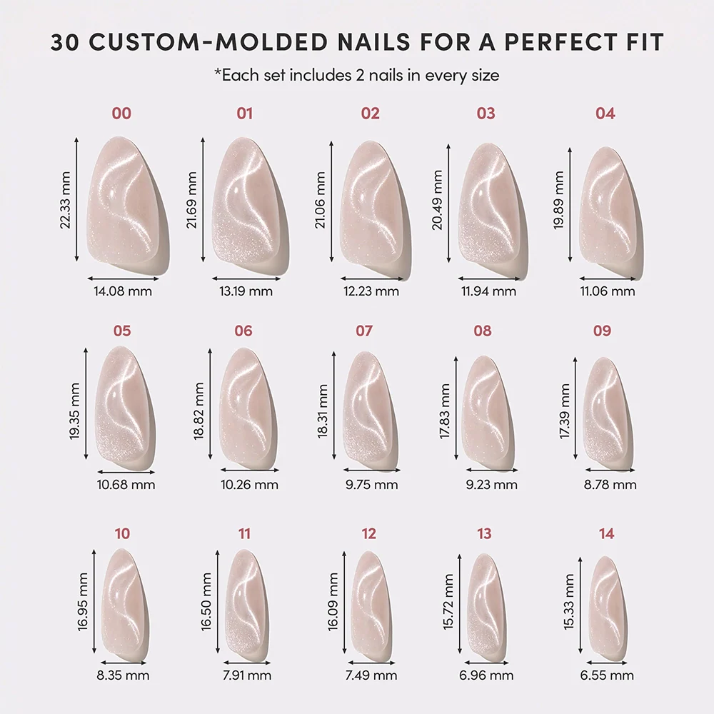 Now THIS is a showstopper. The WOO-MAN! Press-On Nail Set features an absolutely mesmerizing cat-eye effect on a short almond base. Abstract, light-catching swirls are created using magnetic powder (talk about high end) to give the ultimate salon-quality appearance in as little as 10 easy minutes.